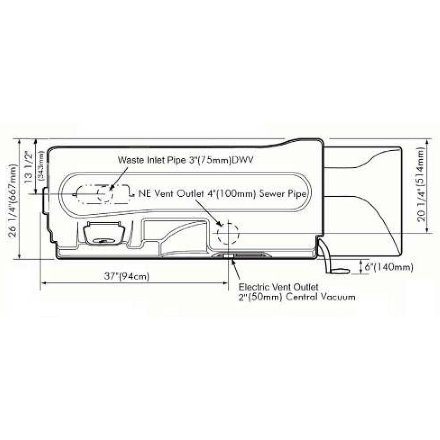 - NOT INCLUDED**: 3" plumbing pipe and fittings needed to connect a 1 pint flush toilet to a central composting unit.