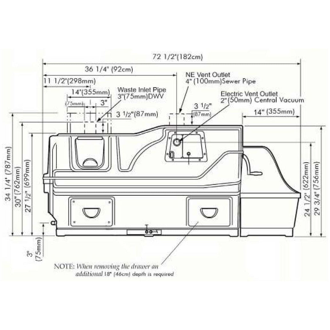- Depth required for Drawer Removal: 45"