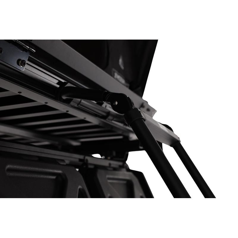 It is important to use cross bars or a roof rack/bed rack that can handle over 175 lbs of dynamic load and has a weight capacity of minimum 750 lbs. The distance between the Evolution V2 Hard Shell Roof Top Tent and the roof rack should not exceed more than 1.5”