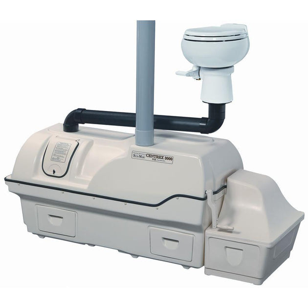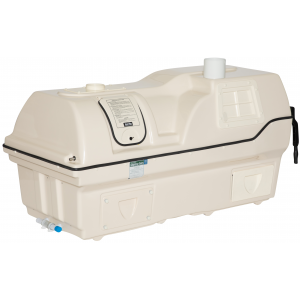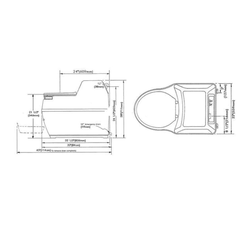 The Sun-Mar Compact comes equipped with a 2" vent stack that attaches to the rear, ensuring proper ventilation and maintaining a fresh and odor-free bathroom environment. Additionally, a 3/4" emergency drain at the rear provides added protection in cases of heavy or residential use, or during prolonged power outages. Enjoy peace of mind knowing your waste management needs are covered.